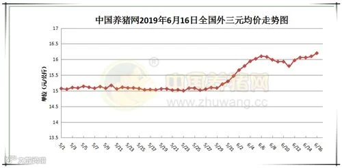 2019年6月16日,据中国养猪网猪价系统监测全国外三元均价为16.20元/公斤,价格较昨日上涨0.10,较上周上涨0.27元/公斤。今日猪价涨幅维持在0.01-0.27元/公斤,跌幅维持在0.03-0.50元/公斤。