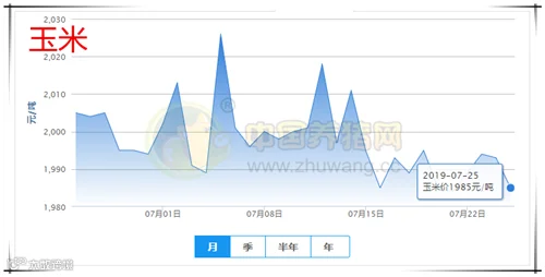 今日全国玉米均价为1985元/吨,较昨日下跌8元/吨,较上周下跌4元/吨。