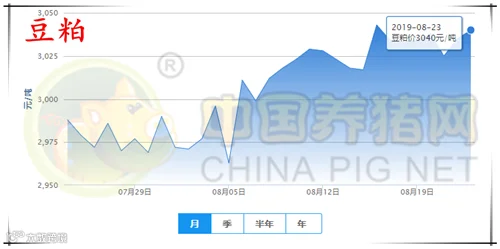 今日全国豆粕均价为3040元/吨,较昨日上涨5元/吨,较上周上涨22元/吨;