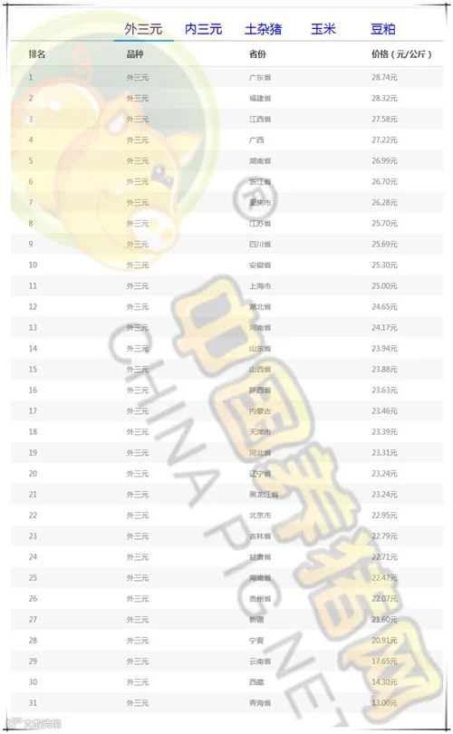 今日最低省份:青海省外三元均价为13.00元/公斤;