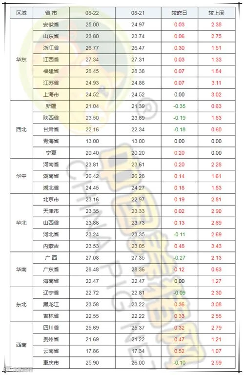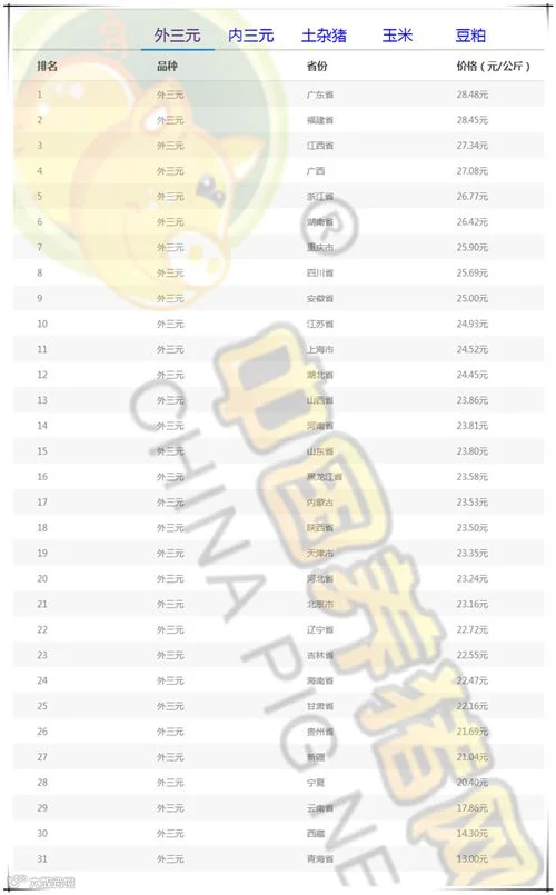 今日最高省份:广东省外三元均价为28.48元/公斤;