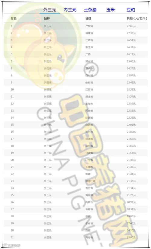 今日最低猪价:云南外三元均价为17.46元/公斤。