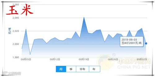今日全国玉米均价为2001元/吨,较昨日下跌23元/吨,较上周下跌15元/吨;