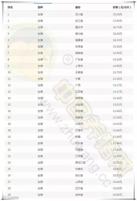 纵观全国,31个省、直辖市范围内,共计12省份猪价上涨,14省份猪价下跌,4省份持平,1省份未监测到数据。