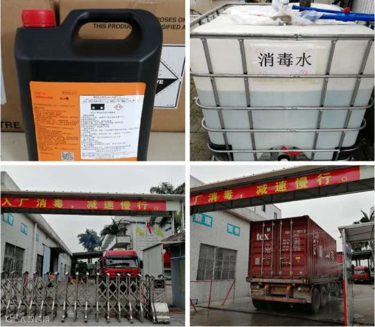 一、严格选择有效的美国进口消毒剂,公司采购大量有效杀灭非瘟病毒的消毒产品;