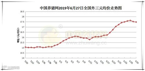 2019年6月27日,据中国养猪网猪价系统监测全国外三元均价为17.48元/公斤,价格较昨日下跌0.04元/公斤,较上周上涨0.78元/公斤。今日猪价涨幅维持在0.08-1.00元/公斤,跌幅维持在0.01-1.00元/公斤。