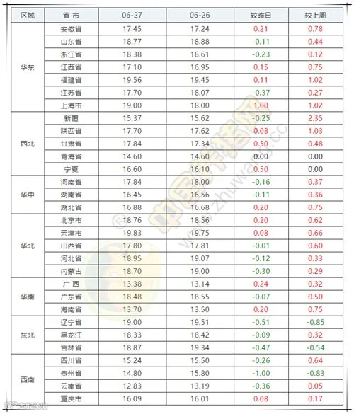 纵观全国,今日外三元均价继续调整下跌,上涨地区较昨日有所增加。上涨地区:安徽、江西、福建、上海、陕西、甘肃、宁夏、湖北、北京、天津、广西、海南、重庆。下跌地区:山东、浙江、江苏、新疆、河南、湖南、山西、河北、内蒙古、广东、辽宁、黑龙江、吉林、四川、贵州、云南。