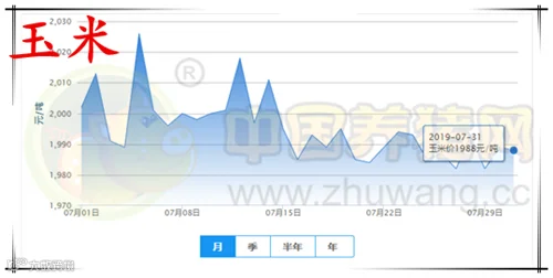 今日全国玉米均价为1988元/吨,较昨日下跌1元/吨,较上周下跌5元/吨。