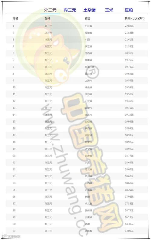 据中国养猪网监测统计,今日全国外三元均价涨跌互现。其中下跌地区:江苏、上海、陕西、河南、湖南、湖北、北京、河北、内蒙古、广东、黑龙江、吉林、重庆;其他地区均以上涨或持平走势为主。