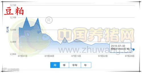 今日全国豆粕均价为2969元/吨,较昨日下跌8元/吨,较上周下跌25元/吨。