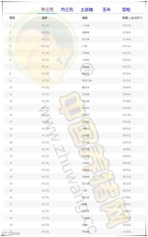 今日最高猪价:广东外三元均价为23.11元/公斤。