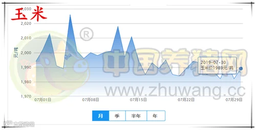 今日全国玉米均价为1989元/吨,较昨日上涨7元/吨,较上周下跌5元/吨。