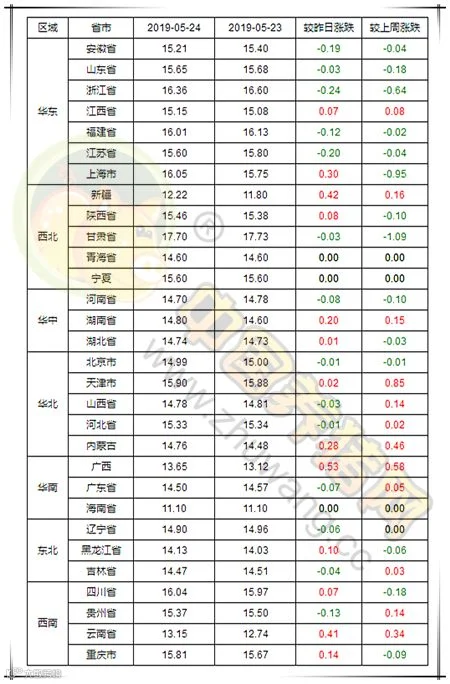 纵观全国,今日上涨与下跌地区持平。除安徽、山东、浙江、福建、江苏、甘肃、河南、北京、山西、河北、广东、辽宁、吉林、贵州地区下跌外,其他地区均保持稳定或上涨。