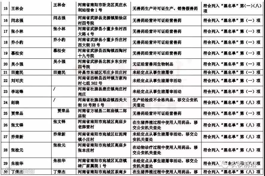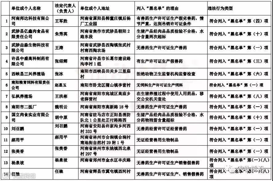 (四)信息公布。经确定列入“黑名单”的企业,省畜牧兽医执法总队通过河南畜牧兽医行政执法网等途径对外公布;