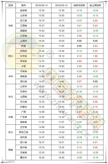 纵观全国,今日下跌地区多于上涨地区其中江西省、江苏省、甘肃省、青海省、宁夏、湖南省、湖北省、山西省、广西、广东省、贵州省上涨,其余各省出现一定幅度的下跌或持平。