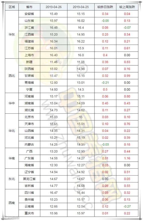 2019年4月26日,据中国养猪网猪价系统监测全国外三元均价为15.07元/公斤,较昨日上涨0.12元/公斤,较上周上涨0.44元/公斤。今日猪价涨幅维持在0.01-0.50元/公斤,跌幅维持在0.03-0.21元/公斤。