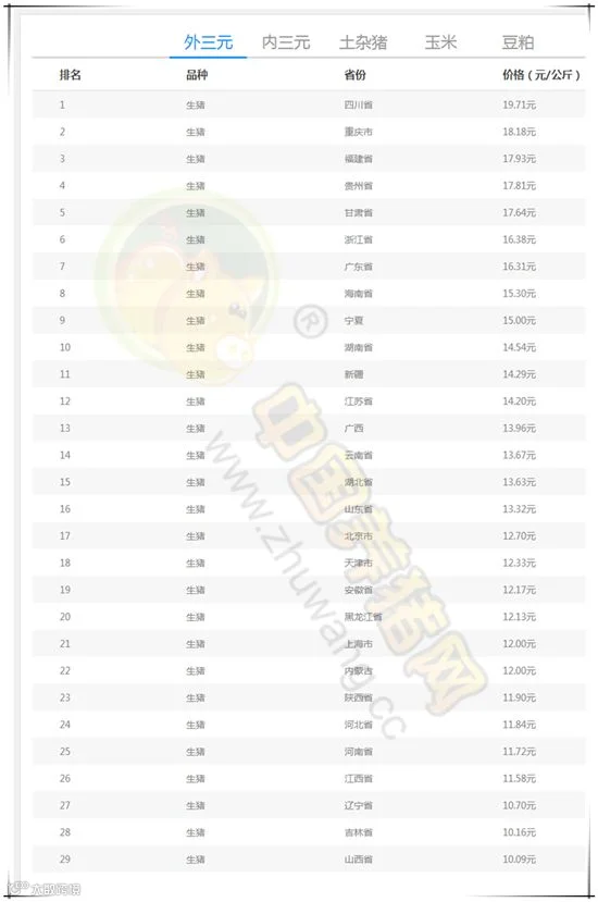 全国猪价排行