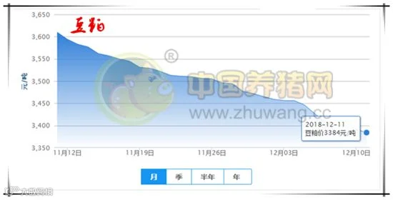 今日全国豆粕均价为3384元/吨,较昨日下跌7元/吨,较上周下跌72元/吨。
