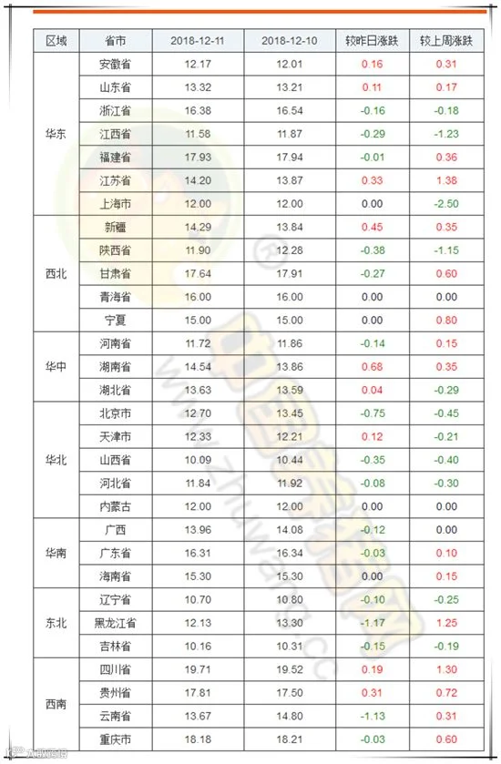 各省份猪价涨跌表