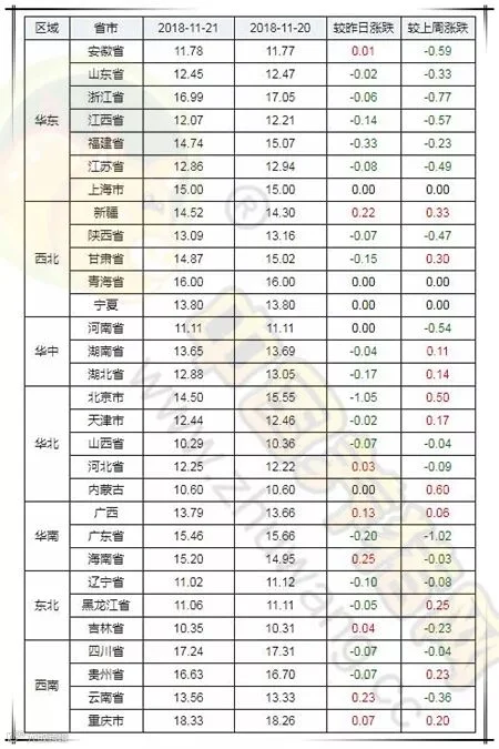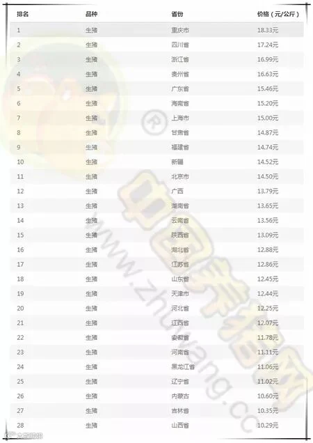 生猪价格延续下行趋势。从全国各地猪价走势来看,西南地区上涨省份较多,最高价为18.33元/公斤。华北地区下跌较多,最低价为10.29元/公斤。其他地区省份跌幅有限,个别省份微幅上涨。