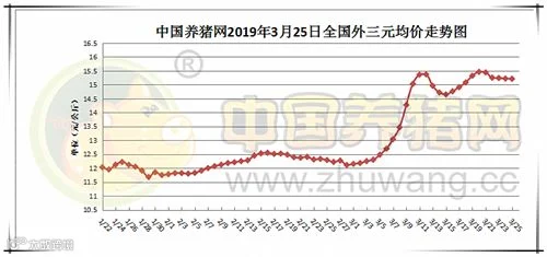 2019年3月26日,据中国养猪网猪价系统监测全国外三元均价为15.21元/公斤,较昨日下跌0.01元/公斤,较上周上涨0.18元/公斤。今日猪价涨幅维持在0.02-0.55元/公斤,跌幅维持在0.01-0.53元/公斤。