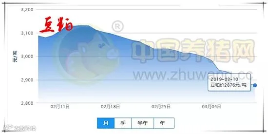 今日全国豆粕均价为2876元/吨,较昨日下跌10元/吨,较上周下跌121元/吨。