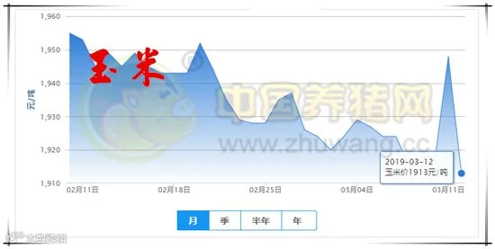 今日全国玉米均价为1913元/吨,较昨日下跌35元/吨,较上周下跌14元/吨。