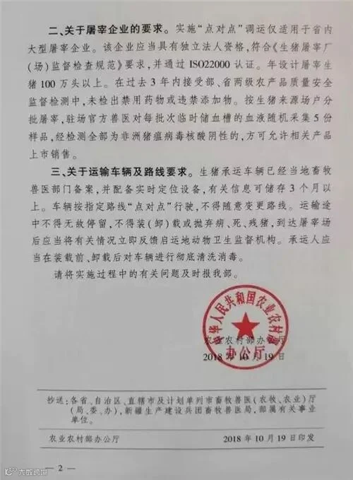 实施“点对点”调运仅适用于省内大型屠宰企业。年设计屠宰生猪100万头以上,在过去3年内接受部、省两级农产品质量安全监督检测中,未检出禁用药物或违禁添加物。