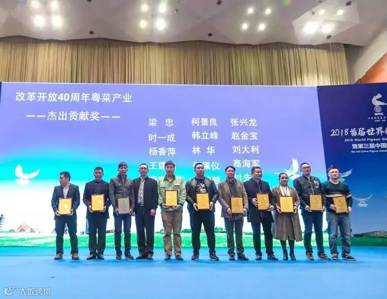 销售经理林华被受于《中国改革开放40周年肉鸽行业杰出贡献奖》。