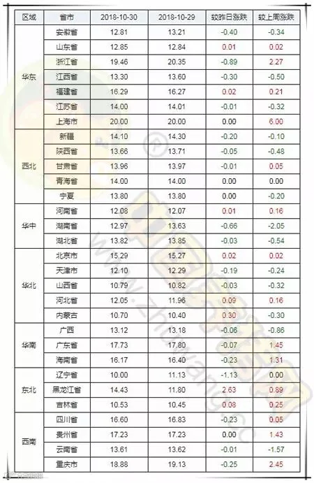 各省份猪价涨跌表