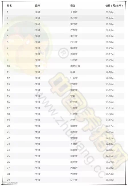 全国猪价排行