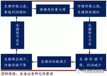 猪价的周期性波动规律可以用“蛛网模型”解释,即在养殖亏损期淘汰产能而养殖高盈利期增加产能。之所以能呈现产能的这种调整,主要是由生猪市场特征决定的:我国生猪市场基本是国内封闭的和完全竞争的,政府的价格调控作用有限;养殖具有周期性,当前补栏、淘汰决策不能同时反应到终端供应,因此供应调整是滞后于价格的;活体出售,养殖户无库存。