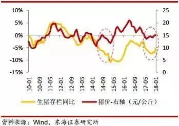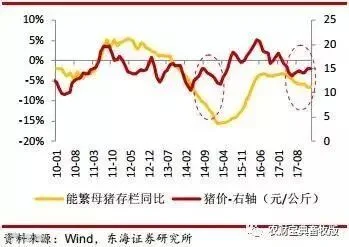 由于过去我国生猪养殖中小散户占比较大,容易在猪价高位补栏低位时淘汰,使得产能的变化波动与生猪价格的走势相似。