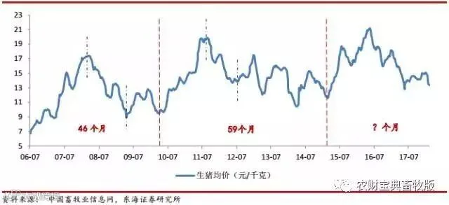 4、 在大多数的小周期中,猪价从低谷走向高峰,大约需要半年时间;