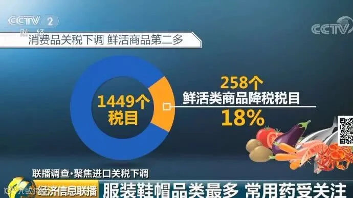 今天,我国降低1449个税目的日用消费品进口关税,而这一数字已经占到所有进口消费品总税目的7成之多,平均降幅更是达到了55.9%。
