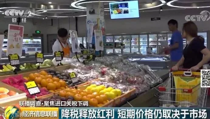 上海外高桥进口商品直销中心国际采购部副总经理 马骏:整个关税是在进口成本构成里面占了一小块,这次降税肯定是使价格下降,但是目前来说肯定还会有一个延后,商品还有一个正常的周转周期,我们预计在今年晚些时候或者明年上半年,这次降税的调整价格就会产生一个福利。