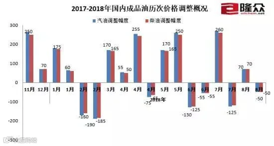国内成品油历次调价概况。