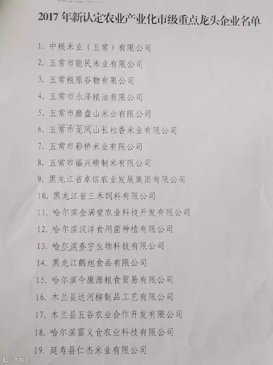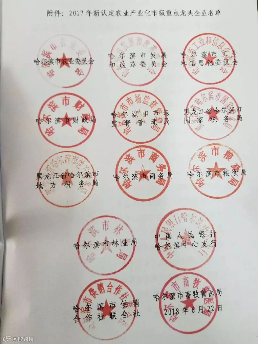 按照《哈尔滨市农业产业化市级重点龙头企业认定和运行检测办法》(哈农联发{2016}1号)的要求,2017年全市开展了农业产业化市级重点龙头企业申报和认定工作,在市农业主管部门推荐、专家评审的基础上,经市农业产业化联席会议成员单位(农业局、发改局、工信局、财政局、市场监督管理局、国家税务局、地方税务局、商务局、粮食局、林业局、人民银行哈尔滨辖内各支行、供销合作社、畜牧局)审核同意和媒体公示,认定黑龙江省三禾饲料有限公司为2017年农业产业化市级重点龙头企业。