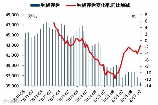 2010年-2017年生猪存栏量