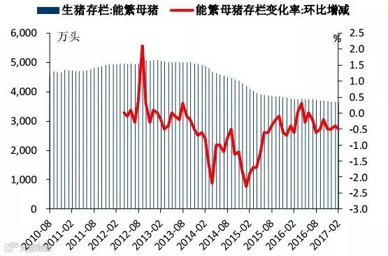 2010年-2017年能繁母猪存栏量