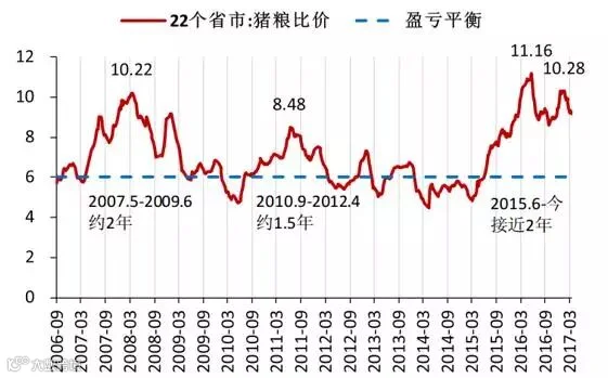 2006年-2017年猪粮比水平