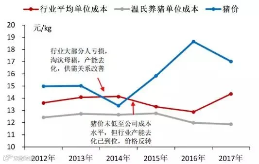 2012年-2017年温氏与行业盈亏对比