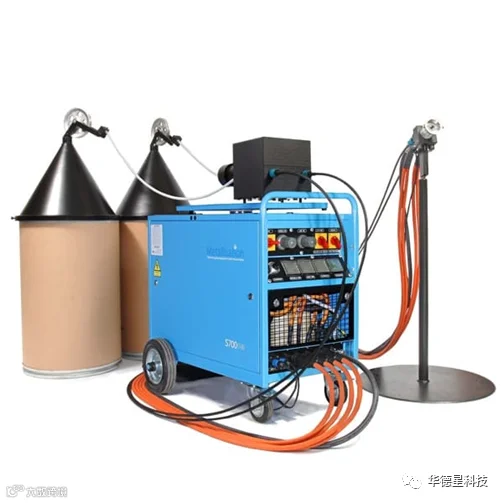 美特金701/S700(16)双丝电弧喷涂系统兼具能力及创新特性,它汇集电弧700手枪久经考验性能以及最新技术进步点。例如,新型 S700(16)电源仍提供高喷涂速率,减少大面积喷涂时间,同时与闭环电流控制相结合,使操作员能够在开始作业之前,独立设置喷涂电流,从而更轻松地设置和保护系统免受过电流影响。控制功能现由简单PLC控制,由于所需组件更少,因此确保更高可靠性。它还使用带有 PLC I/O标准万用表以轻松查找故障。S700(16)电源采用密封电子元件,在最恶劣喷涂环境中具有出色可靠性,该设计还允许为线材驱动和送丝提供多种客户特定包装选项。例如,在一个选项中,该装置整齐安装于电源上,使其在喷涂时可以自由旋转,其它选配件包括线材驱动装置地板或手推车安装装置。驱动装置非常坚固,确保在最恶劣现场条件下具有最高可靠性。这款轻巧手持式手枪采用成熟美特金技术,含独特恒定几何形状(CG)头。这可确保在更换易损件备件时实现喷涂质量稳定,并将停机时间降至最低。