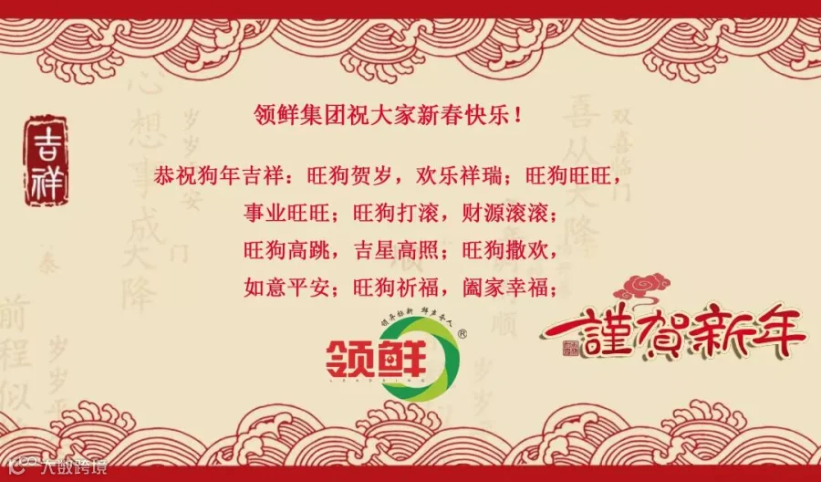 领鲜集团向大家拜年了!祝大家新年快乐!狗年,旺旺旺!