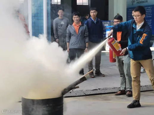 随后,刘老师详细介绍了灭火器、防毒面罩等常规消防设施的正确使用与安全使用技巧,并组织了君安科技园相关人员与我公司全体员工一起进行干粉灭火器正确灭火的现场演练,让大家对消防知识有更直观的了解。同时,在刘老师的指导下,综合事务部对公司办公室、厂房和实验室的用电情况和消防设施进行了全面的安全排查。