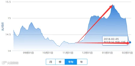 2月5日再次下跌,从中国养猪网外三元半年走势图来看,生猪价格已经跌至11月暴涨点。那么问题来了,猪价还能涨吗?还能跌吗?