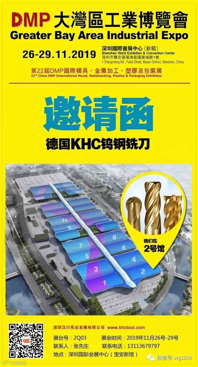 2019年2月18日中共中央、国际务院正式印发《粤港澳大湾区发展规划纲要》,拉开了大湾区快速发展的序幕!配合国家大湾区发展战略,深圳建设全球最大展馆,为会展产业提供了一个国际大平台。为庆祝DMP举办20周年,积极融入粤港澳大湾区发展规划,11月东莞厚街DMP展移到深圳新展馆,与所有参展商共同打造更高层次的世界级工业博览会。KHC进口钨钢铣刀向您发来邀约:
