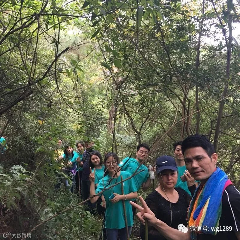 体验过皮划艇的自由,跟着教练一起去徒步,距离不远,山也不陡,海拔才200多米。有个小插曲,第一次走的路过不去,大家原路返回,跟着教练走另外一条路,路上边走边唱山歌,山中蚊子多,建议带上驱蚊的药品(风油精、花露水等)。这次的徒步,难度不大,到达到山顶,大家一起吃橘子,领略山顶的美好风光。