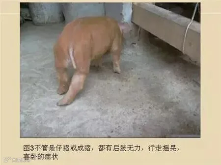 (4)乳猪可出现神经症状,如转圈、共济失调等。