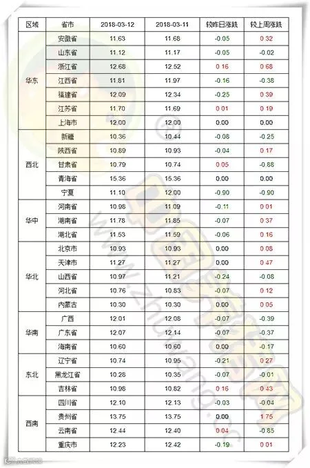 各省份猪价涨跌表
